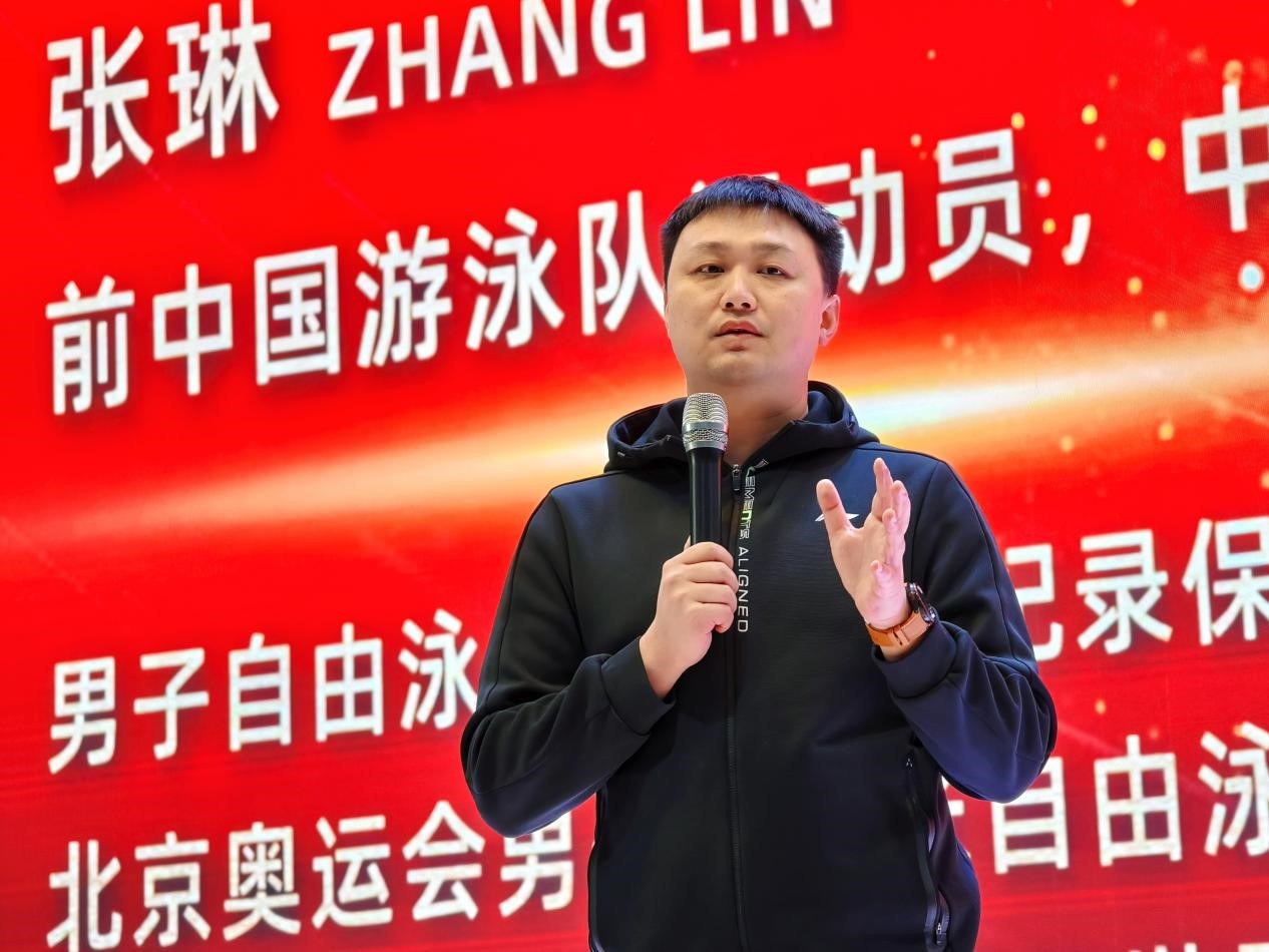 接下来,张琳叔叔为同学们分享了自身经历,讲述了自己的成长故事。在他的游泳生涯中遇到挫折时不是逃避,而是选择坚持并继续努力,这一切都源自他对游泳这项运动的热爱。他通过分享自己的励志故事,为同学们传递了“拼搏、奋斗、坚持”的体育精神。他希望各位同学们能够找到自己的热爱,坚持并为之努力奋斗,要坚定梦想,成为自己的人生冠军。无论是在体育、学业还是在生活中,能做到不畏艰苦,坚持不懈,不断学习,让自己的身心变得更强大,未来更好地报效祖国!