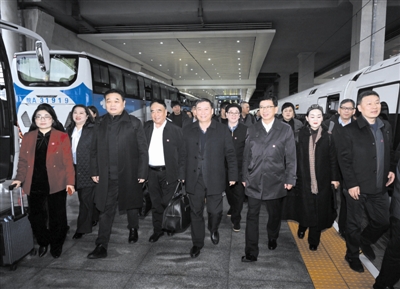 3月3日上午,出席十四届全国人大三次会议的在皖全国人大代表乘坐高铁赴京。 杨竹/摄