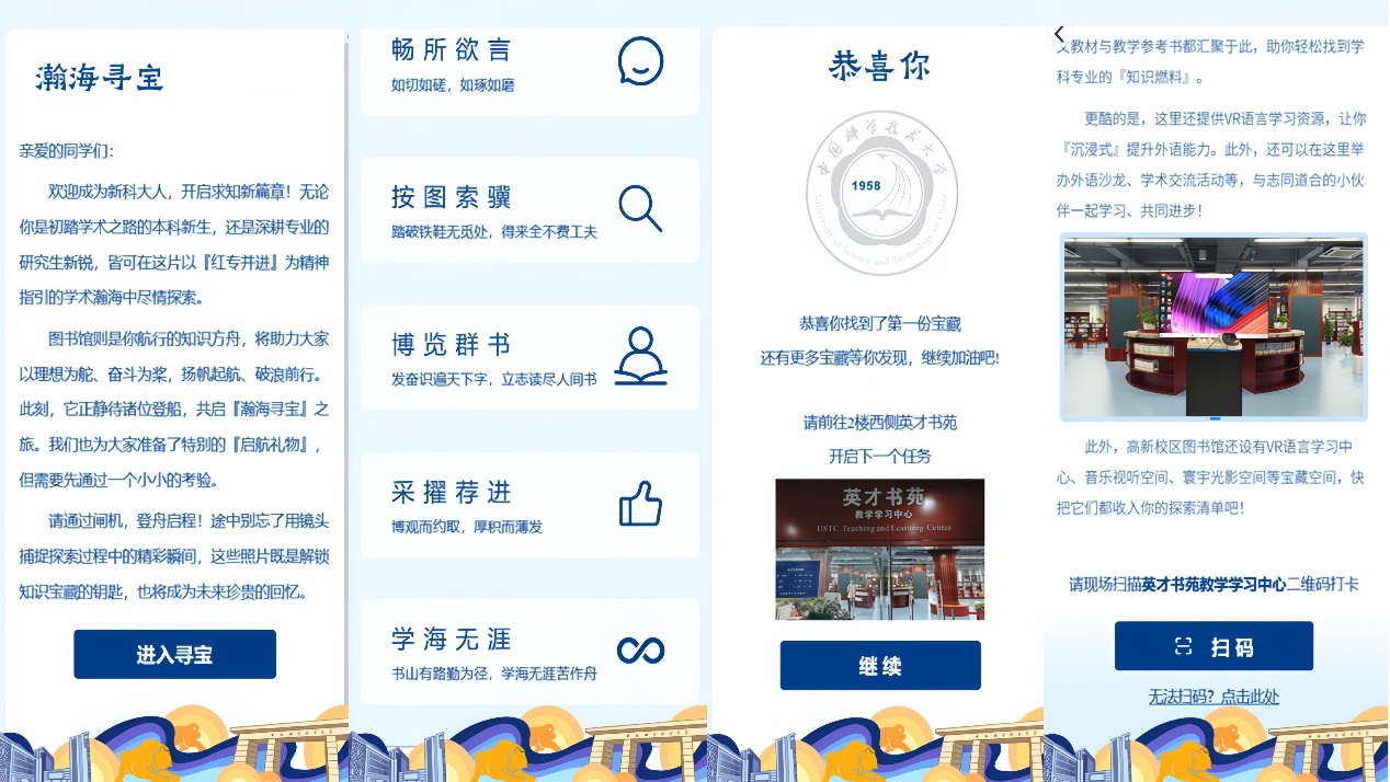 “瀚海寻宝·互动闯关”活动是图书馆在既往“线上微视频学习+线下参观”培训模式基础上的一次重要升级。图书馆历经三个多月精心筹备,依托数字化平台,首次采用任务驱动式闯关形式,突破了传统参观模式“单向讲授”的局限。