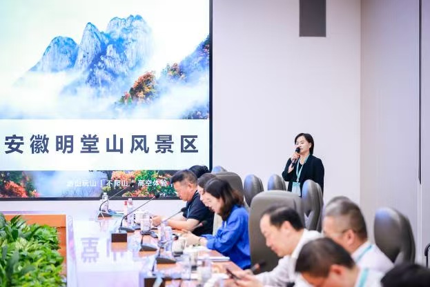 会上,整体推介了安庆文旅资源,天柱山、天悦湾、明堂山、大别山彩虹瀑布、花亭湖、龙潭古寨等核心景区代表依次介绍各具特色的康养业态、核心产品,安庆天柱山机场推出为北京游客量身打造的往返优惠机票等服务。来自大家保险、北京健康养老集团、北京市老龄产业协会、马蜂窝、去哪儿网等文旅康养企业、机构和重点旅行商代表,与安庆方面进行了沟通洽谈,就潜在的投资合作、客源输送模式等进行了深入探讨。与会嘉宾还一同参观了“山水有清音:安徽文化艺术大观”展览。