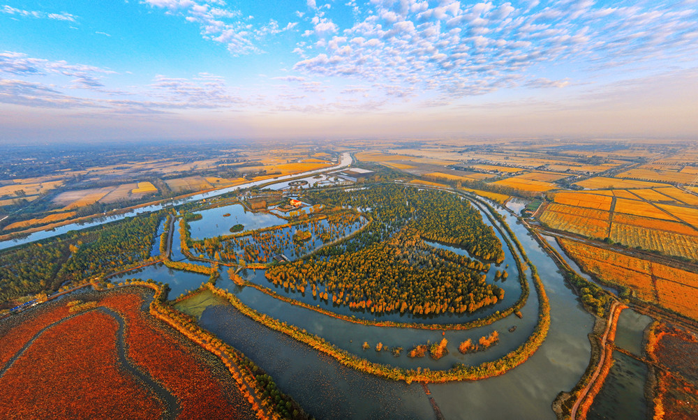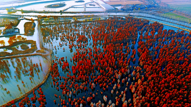 鸟瞰池杉湖湿地公园。徐艳/摄