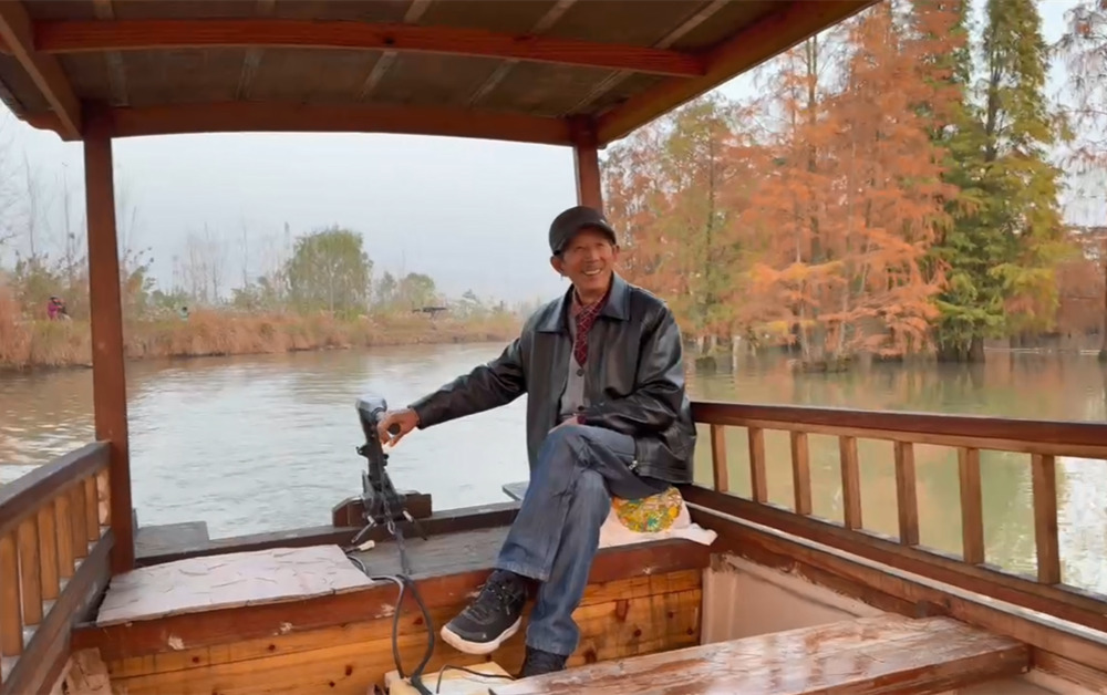 今年76 岁的杨有怀,从 2018 年池杉湖有游船开始就当船工,像这样的行程,他每天要带领游客游览穿梭十多趟,旅游高峰期甚至有几十趟。他不仅是船工,更是义务解说员和环保宣传员,和其他船工一起,用行动守护着池杉湖的生态,也见证了这里的环保奇迹。