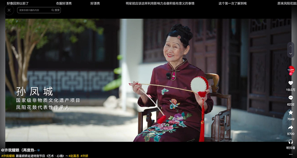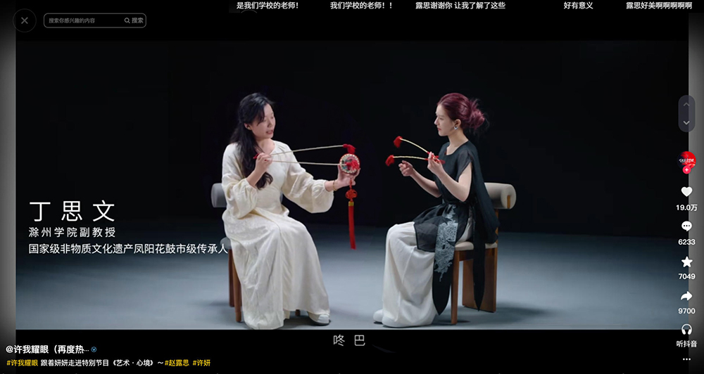 市场星报、安徽财经网 (www.ahcaijing.com)、掌中安徽讯 (何中润 记者 胡昊) “原来这小小的花鼓里,藏着这么多故事!”近日,随着青年演员赵露思新剧《许我耀眼》的热播,一段她与滁州学院音乐与教育学院副教授、凤阳花鼓市级传承人丁思文的对话片段刷屏网络。话题#赵露思携凤阳花鼓展非遗魅力#迅速登上热搜,让这门历史悠久的国家级非物质文化遗产,在当代观众的视野中璀璨“破圈”。