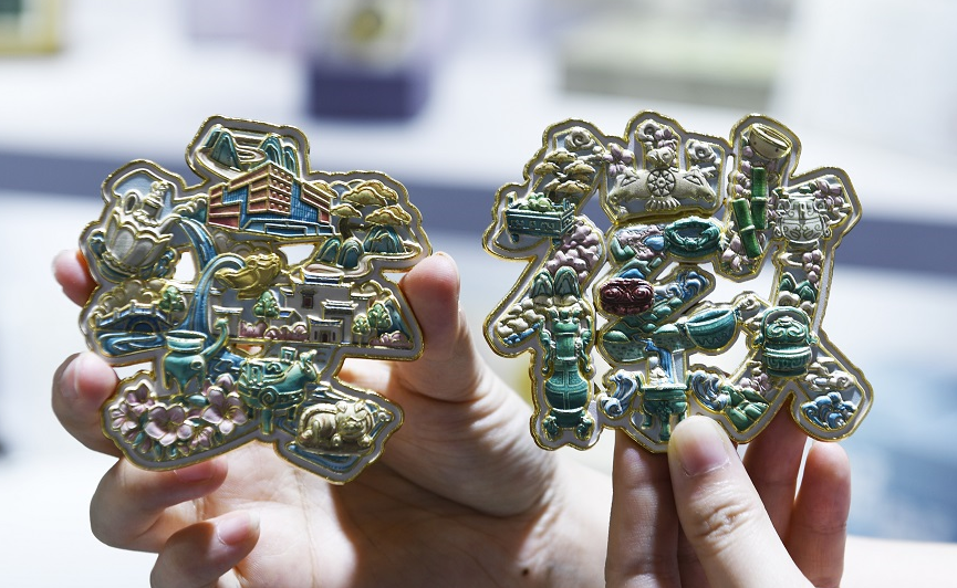 在文博文创版权展区,安徽博物院、安徽楚文化博物馆等,推出龙虎纹鼓座、西周公卣、青铜跪跽俑、窃曲纹鹿首铜鼎等精品馆藏文物为原型的系列版权衍生产品。安徽新华发行集团带来原创IP形象“元小鳌”的系列主题衍生产品,包括定制图书、周边文创等。安庆怀宁有戏传媒精彩呈现黄梅戏文创系列,将黄梅戏经典剧目的人物和元素融入挂件、手办、文具等。同时,展区还汇集了来自黄山徽州竹木雕、马鞍山洪滨丝画以及池州青阳农民画等艺术作品,生动展现了安徽近年来优秀版权作品产业转化成效。