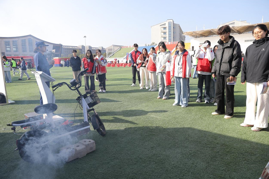 此外,校园火灾隐患、灭火小妙招、消防产品辨识、电动车安全等五大科普讲解展区也人头攒动,不少同学手持集章卡穿梭于各点位,在打卡互动中学习消防知识,兑换定制文创产品,在寓教于乐的氛围中增强消防安全意识、提升自救互救能力。