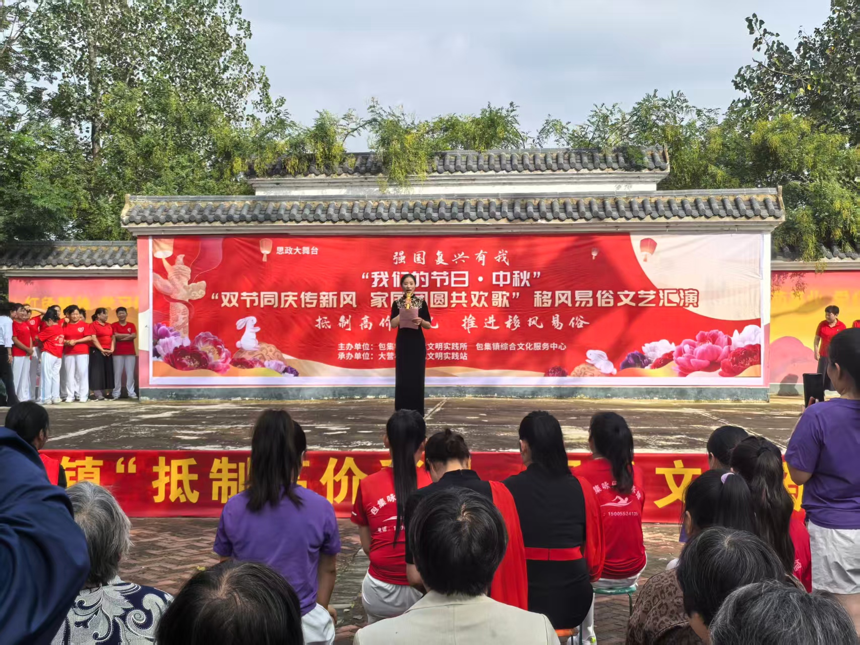 节日唱戏“接地气” 传统美德“润乡风”。依托“我们的节日”系列、送戏下乡等主题活动,包集镇将移风易俗与传统节庆深度融合,让文明新风在节日氛围中自然传递。春节组织“文明春联进万家”,用墨香传递节俭理念;端午开展“邻里包粽话文明”,在粽叶飘香中倡导互助友爱;七夕举办“传统寄情新风筑家”文艺活动,用暖心故事唱响文明之歌;中秋国庆“双节”期间,更是举办“双节同庆传新风 家国团圆共欢歌”移风易俗文艺汇演,将婚事新办、丧事简办等内容编排成戏曲、快板等节目,让群众在欣赏精彩演出的同时,潜移默化转变思想观念,让传统美德浸润乡风、滋养人心。此外,“送戏下乡”活动全年常态化开展,年均演出超30场,让文明新风随戏音传遍乡村角落。