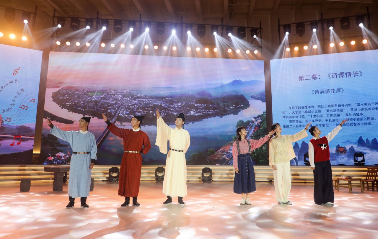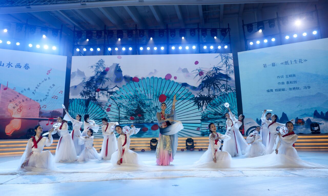 开幕式在创意序章《悦见泾川》中拉开帷幕。AIGC动态视频与非遗剪影表演交相辉映,生动勾勒出泾县山水灵秀与宣纸文化的千年传承脉络,瞬间将现场观众带入“诗画泾川”的意境之中。随后,舞蹈《纸上生花》以灵动舞姿演绎宣纸制作的匠心神韵,情景剧《诗潭情长》重现李白与汪伦的千古佳话,节目以艺术化表达串联起泾县的人文历史与时代新韵,赢得现场阵阵掌声。