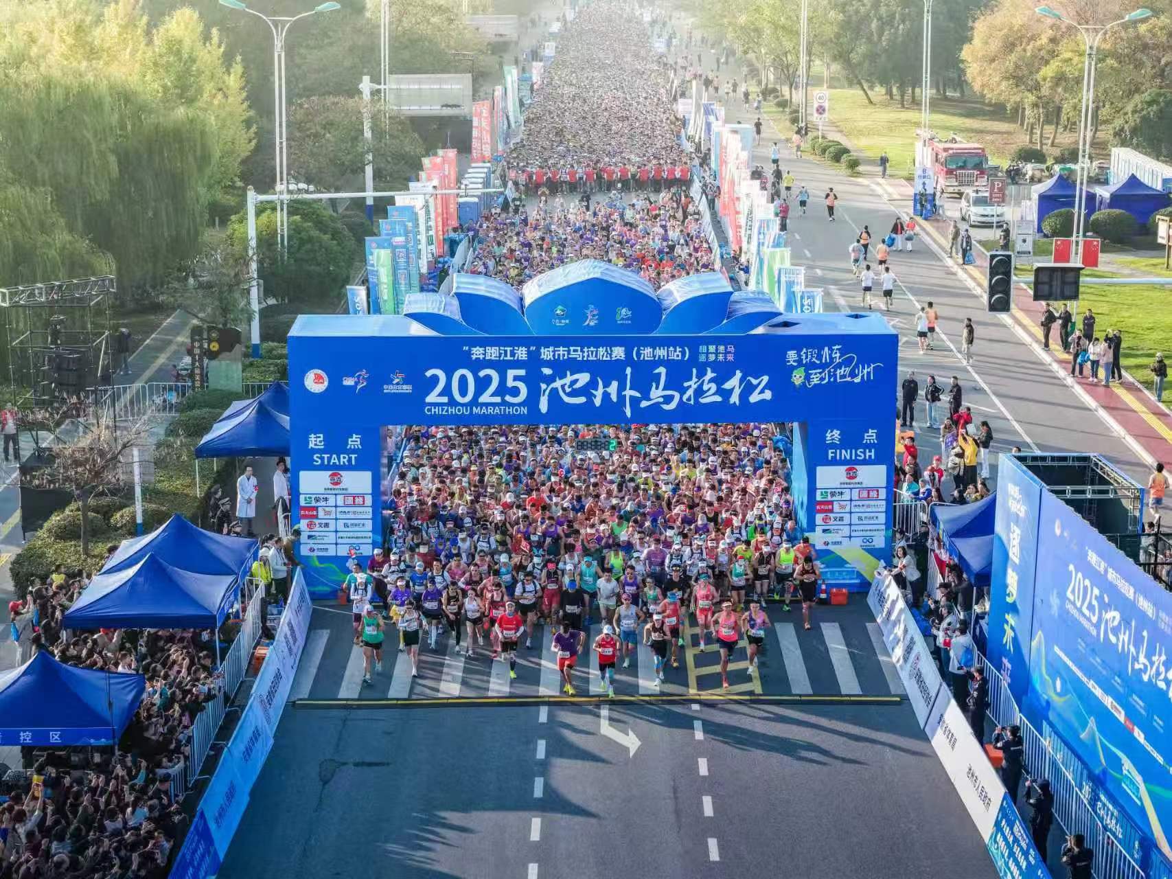 11月16日上午8时,“奔跑江淮”城市马拉松赛(池州站)2025池州马拉松在平天湖莲花台广场鸣枪开跑。1万名跑友齐聚赛道,以奔跑之姿共赴这场体育盛会。