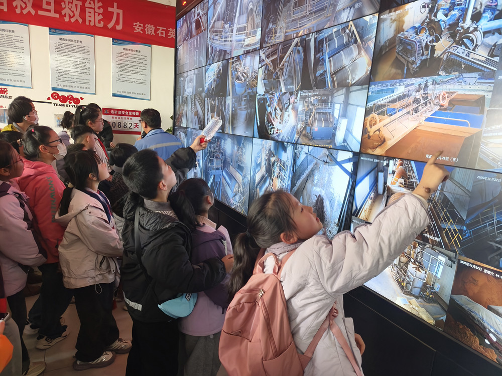 活动中,科普讲解与现场互动演示相结合,让冰冷的工业场景变身可触摸、可探究的生动课堂。孩子们亲眼目睹石英砂如何“蜕变”为光伏玻璃,亲手触摸新型显示材料的细腻质感,倾听技术人员解析太阳能发电的原理与应用,直观感受凤阳从“一粒砂”到“千亿产业”的蝶变历程。这场别开生面的研学,不仅为孩子们开拓了科技视野、增长了产业知识,更让他们真切体会到父母扎根岗位、服务城市的价值,感受到家乡产业发展的澎湃活力。