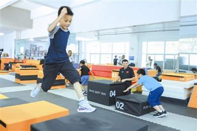 参观结束后,大家共同来到儿童运动馆体验跑酷运动。专业教练团队通过分解示范,系统教授了跨越障碍、落地翻滚等基础技巧。孩子们在安全防护下大胆尝试各种动作,家长们的加油声此起彼伏,现场洋溢着欢乐的运动氛围。