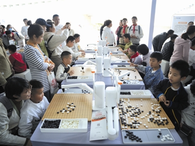 除了展示外,现场还设置了很多趣味互动项目,比如机器人射门让市民防守、宠物机器人各种卖萌撒娇、围棋机器人和小朋友对弈……让机器人走到市民身边,为市民开启了一段充满惊奇与欢乐的科技探索之旅。