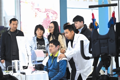 水木清泰的医生帮助参观者体验新科技产品 李芳/摄