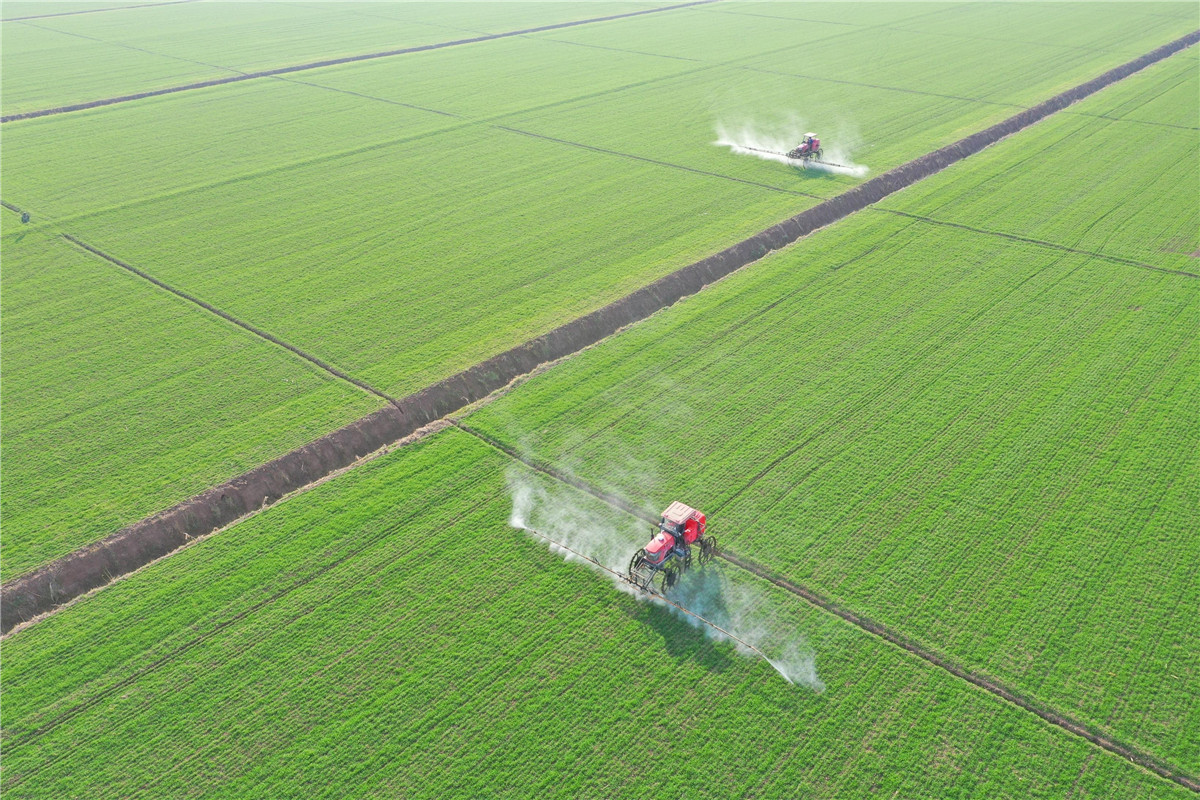 当前,华阳河农场2.5万亩小麦进入分蘖期,该农场抢抓晴好天气和墒情,针对不同苗情,实施小麦冬季化学除草、喷施肥料等综合田管措施,促弱转壮,增强植株抗寒能力,为粮食增产丰收打好基础。
