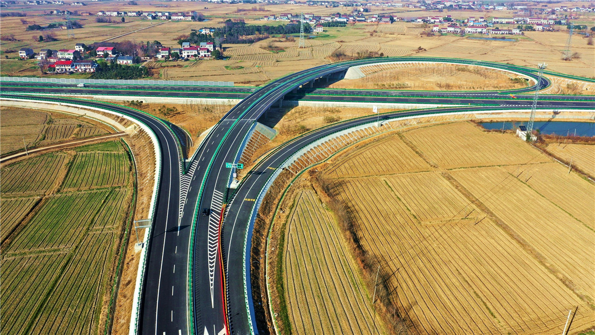 12月28日,G4222和县至襄阳高速公路六安段正式通车。和襄高速六安段全长170.6公里,总投资240.2亿元,是六安市自行建设的第一条高速公路,也是该市迄今建设里程最长、投资规模最大的单体项目。图为俯瞰位于舒城县桃溪镇的和襄高速舒城北收费站附近交通枢纽。
