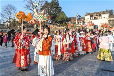 从2025年12月1日至2026年3月20日,“来桃花潭过大年”活动将带您领略地道的皖南年俗。景区内马年主题打卡装饰、热闹的踏歌舞表演、腾跃的舞龙队伍,营造出浓郁的春节氛围。具体表演场次将根据天气灵活调整,确保欢乐不减。