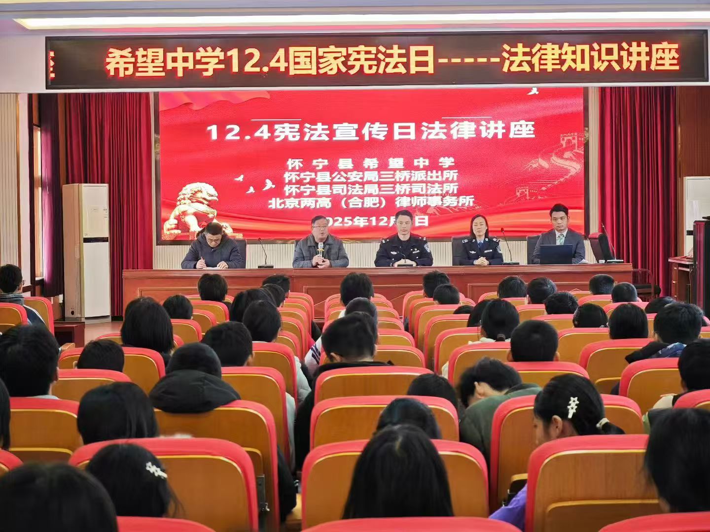 2025年12月4日是第十二个国家宪法日,为弘扬宪法精神、增强全民法治观念,安徽省怀宁县三桥镇司法所联合三桥派出所、北京两高(合肥)律师事务所以及三桥镇希望中学、三桥中心学校和社塘岭村委会共同开展了以“大力弘扬宪法精神,推动进一步法治宣传建设”为主题的宪法宣传系列活动。活动聚焦校园与乡村两大场景,通过差异化普法形式,将法律知识精准送达不同群体,切实提升了基层群众的法治素养。