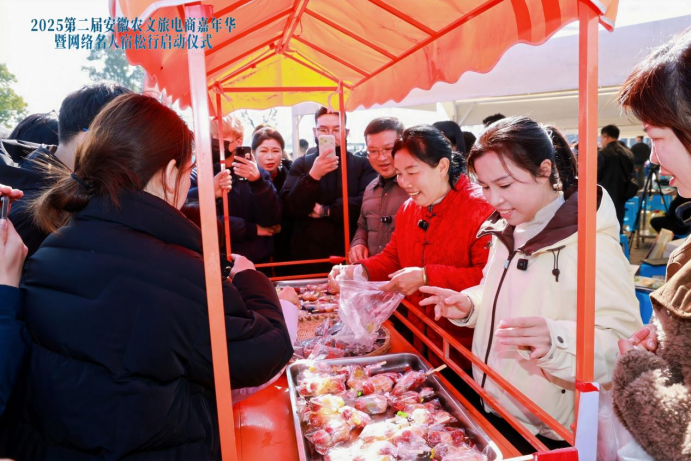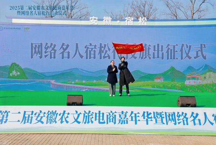 启动仪式现场亮点纷呈、热力十足。“滋味宿松”专题推介全方位、多角度呈现农文旅融合发展的丰硕成果;实时连线直击大湖冬捕的壮阔景象;本土艺术家倾情演绎黄梅戏、文南词等传统艺术,古老文脉与现代新风交相辉映、韵味悠长;“网络名人宿松行”授旗出征,用镜头捕捉宿松山水灵秀,用文字讲述宿松人文气韵,用直播展现宿松产业兴盛,为宿松优质产品搭建更广阔的“出圈”平台。