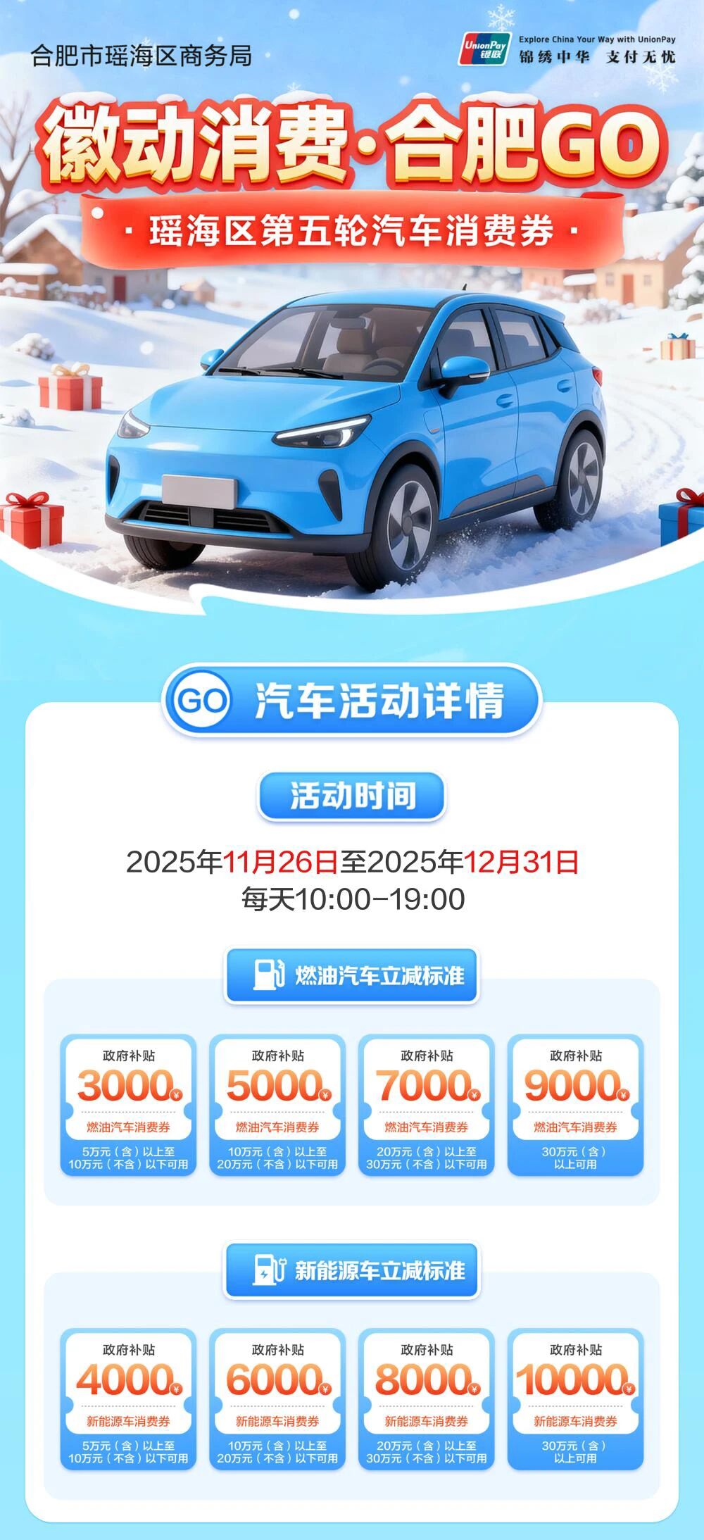 ▶购买5万元(含)以上10万元(不含)以下燃油汽车,使用活动专用POS终端支付15000元整,可享受立减3000元优惠补贴,客户实际支付12000元;