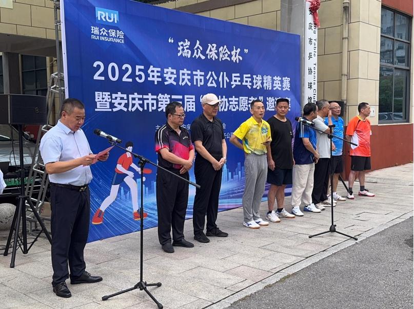开幕式上,瑞众保险安庆中支负责人鲍海涛致辞,向赛事开幕表示祝贺,向组委会及工作人员致敬。他强调,作为扎根安庆的国有金融机构,中支始终将社会责任放在重要位置,此次冠名赛事,既是回馈社会、支持本地文体事业的实践,更是以行动倡导健康生活方式——保险的核心是“守护安稳”,与乒乓球运动蕴含的“拼搏进取、追求健康”精神高度契合,二者共同为“美好生活”筑牢根基。