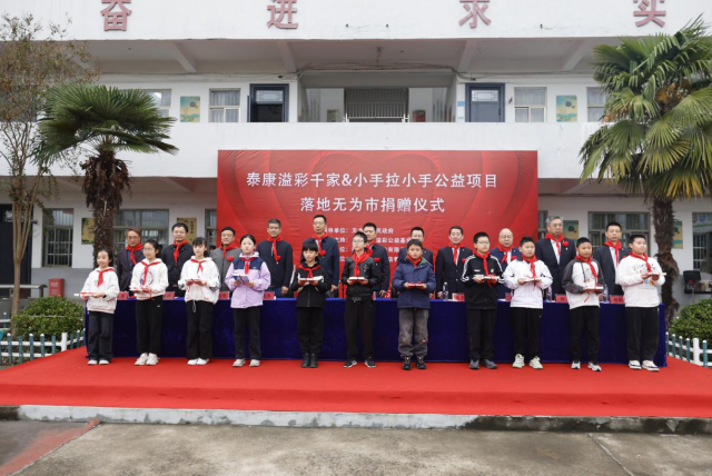 活动中,泰康保险集团助理总裁兼董事会秘书应惟伟表示,健康与养老,已成为这个时代的核心民生需求,泰康作为大健康产业头部企业,29年来将“商业向善”融入基因,始终践行“理念向善、事业向善、公益向善”的价值观。本次“溢彩千家”挂牌与“小手拉小手”捐赠的双重公益行动,诠释了泰康公益最核心的关切——关心生命的绽放,呵护生命的晚晴。希望通过今天的行动,唤起社会各界对乡镇教育和养老事业更多关注,让温暖的阳光照进生命的每一个阶段。
