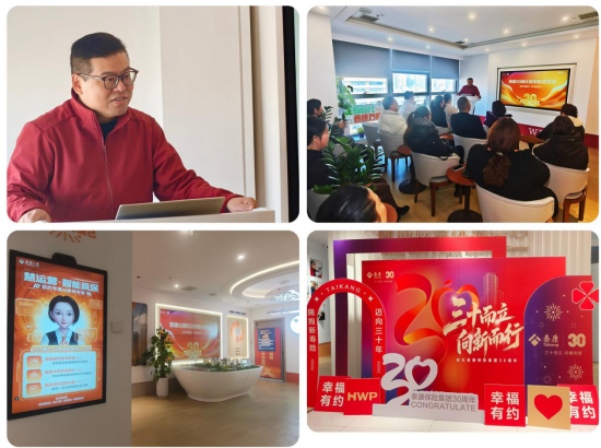 在成果展示环节,活动以“开启幸福、尊享幸福、牵手幸福”三大板块为脉络,通过丰富的图文和数字人视频等形式,系统展示了泰康在新寿险商业模式下的三大创新:新寿险模式、双有约产品以及HWP绩优队伍。同时,活动还重点突出了泰康在服务体系、科技金融与公益领域的三大引领优势,生动呈现了泰康在“长寿时代”背景下的战略布局与实践成果。