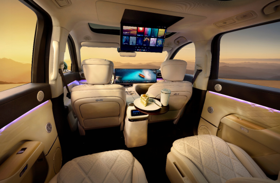 百万级豪华是从视听到触感的全维升级。深度融入东方美学的风云T11外观豪华大气,座舱配有17㎡皮质工艺包覆面积,配合全系标配的全车静音玻璃与静音轮胎等配置,构建了深空静谧座舱,让豪华体验无处不在。同时,风云T11还搭载前排30吋6K一体寰宇屏与17.3吋后舱娱乐屏,结合峰值功率达2880W的7.5.4.2全景声布局的伯牙之音豪华音响与256色律动氛围灯,让每一次出行都是一场影音盛宴。