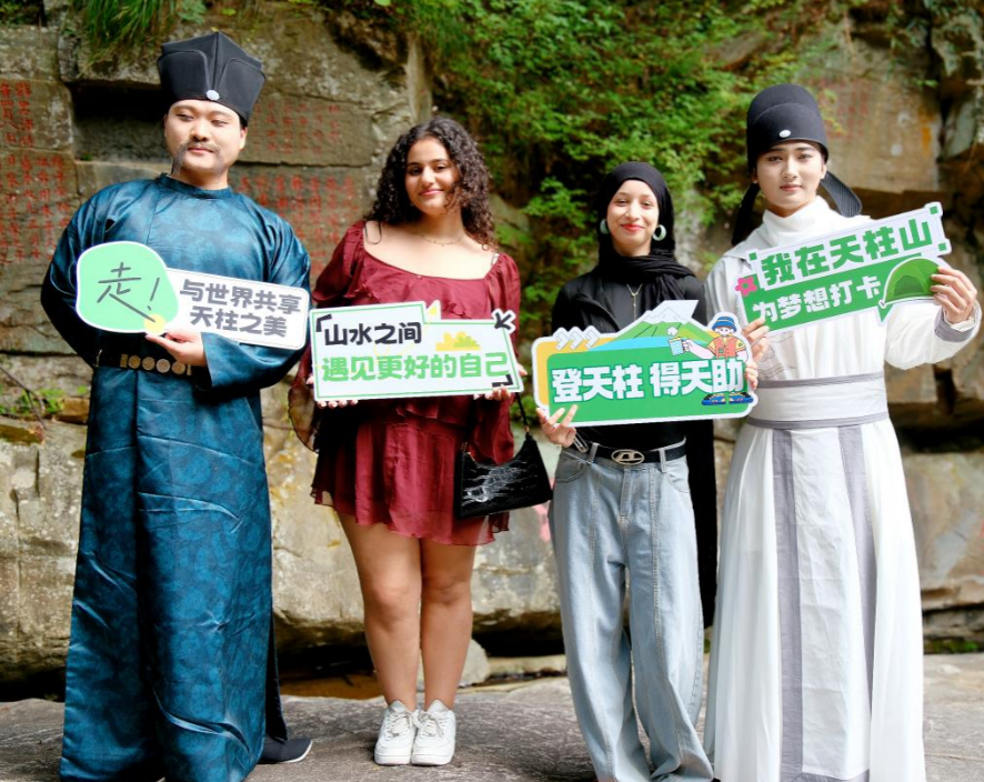 来自俄罗斯、韩国、奥地利、波兰、越南、缅甸、柬埔寨、印度尼西亚、阿富汗、巴基斯坦、土库曼斯坦、布基纳法索、科特迪瓦、孟加拉国、摩洛哥、哥斯达黎加、阿尔及利亚、加纳、哈萨克斯坦、蒙古、苏丹等世界21个国家的52名在华留学生、30名中国高校学子以及20名文旅KOL齐聚天柱山,通过地质探索、非遗体验,共同开展了一场跨越国界的文旅盛事。