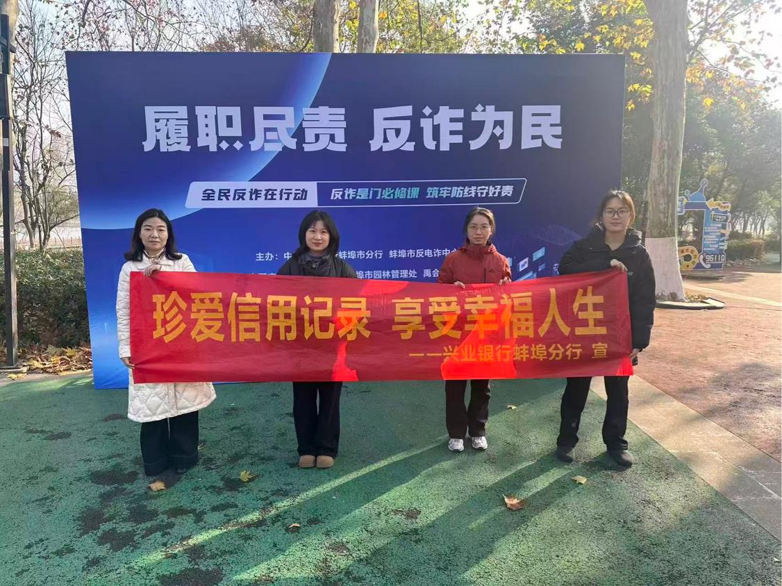 2026年元旦前夕,兴业银行蚌埠分行工作人员走进张公山公园开展节前金融防诈骗及征信宣传活动,主要针对老年群众普及金融防诈知识、远离“征信修复”陷阱。