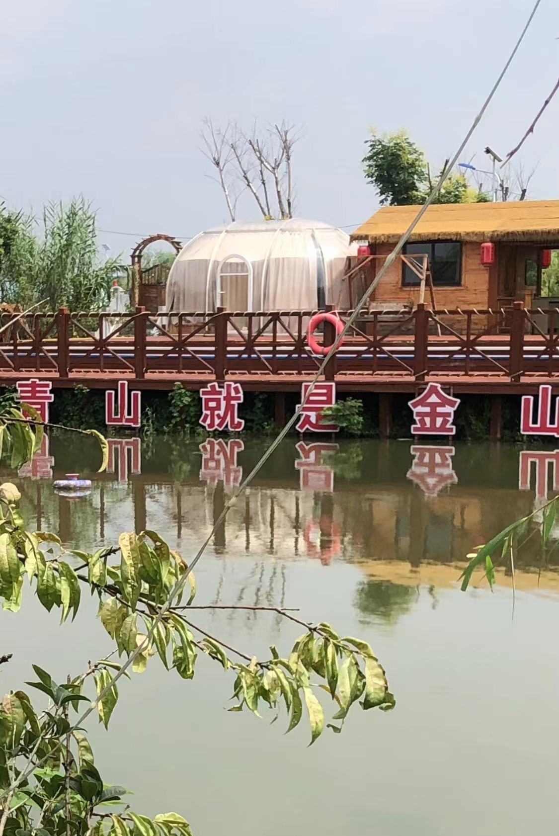 循着李会长的讲述,漫步农庄更觉意趣盎然。入口处“顺河公社欢迎您”的字样格外亲切,垂柳摇曳的主干道旁,水上乐园“绿水青山就是金山银山”的标语醒目亮眼;穿过第二道大门,高耸烟囱下刻着“乡愁”的磨盘引人驻足,院内晒秋的花生玉米满是烟火气,小桥流水、蔬果满园与秋千、蒙古包相映成趣,石磨盘铺就的路面更是将古代韵味与现代艺术巧妙融合,让人沉醉其中,流连忘返。