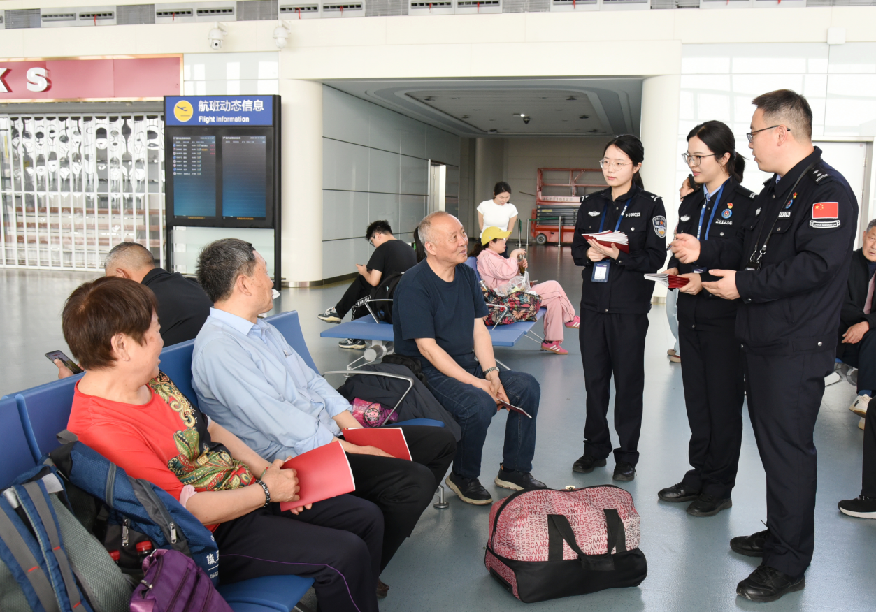 边检站民警在芜宣机场向候机旅客讲解法律知识