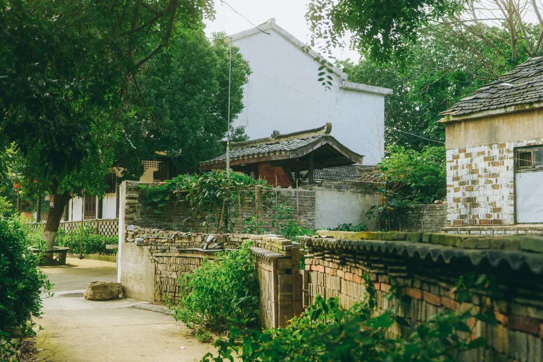 走在村里,白墙黛瓦在绿树间若隐若现。大人摇着蒲扇,孩童追着蝴蝶,脚步声惊起檐下几只麻雀,叽叽喳喳掠过青瓦屋顶。每一块墙砖都浸着岁月的温润,每一扇木门后都藏着寻常日子的恬淡。
