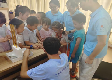 为了让抽象的科学知识更加直观易懂,合肥师范学院盛大行知学堂的小先生们也精心设计了多个互动环节。在手工制作环节,小学员们通过纸桥承重来了解拱形抗压的原理,亲自体验到结构力学的魅力。物理实验环节,两所高校的志愿者们则通过“静电吸附”“光学折射”等实验,让孩子们亲眼目睹了物理现象的奇妙。在问答环节,孩子们积极举手提问,志愿者们则耐心解答,现场气氛热烈而活跃。