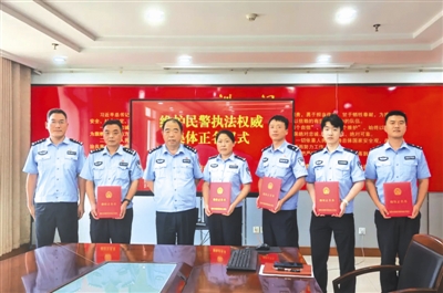 仪式上,巢湖市公安局维护民警执法权威委员会宣读了《正名报告》,并为在执法活动中遭受不实投诉的民警颁发《维护民警执法权威正名通知书》,以组织名义为他们澄清事实。
