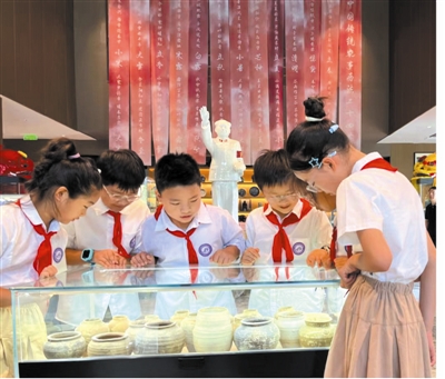 “传承不是守着老物件不动,而是要让它们跟上时代的脚步。”胡旭接过接力棒,他突破传统展陈模式,在馆内打造非遗研学空间,推出“徽韵手作”体验课。孩子们在这里可以亲手拉坯制陶,学习宋朝茶果技艺,体验扎染与掐丝珐琅的绚丽,用黏土和版画创意复刻徽派纹样。每月举办的非遗工坊和科普大讲堂,让老物件不再是玻璃柜里冷冰冰的展品,而是能在人们指尖“活”起来的文化载体。