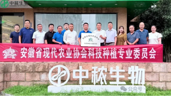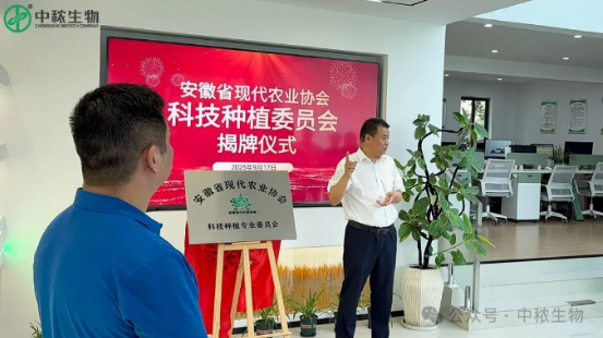 9月17日,历经半年多调研、报批与筹备,安徽省现代农业协会科技种植专业委员会在合肥高新区正式成立。上午10时18分,协会执行会长陈维光、研究员蔡东东、办公室主任倪颖等领导专程莅临中秾生物科技集团总部,为专委会举行隆重揭牌仪式,标志着协会在安徽农业科技种植领域迈入“协同发力、精准服务”新阶段。