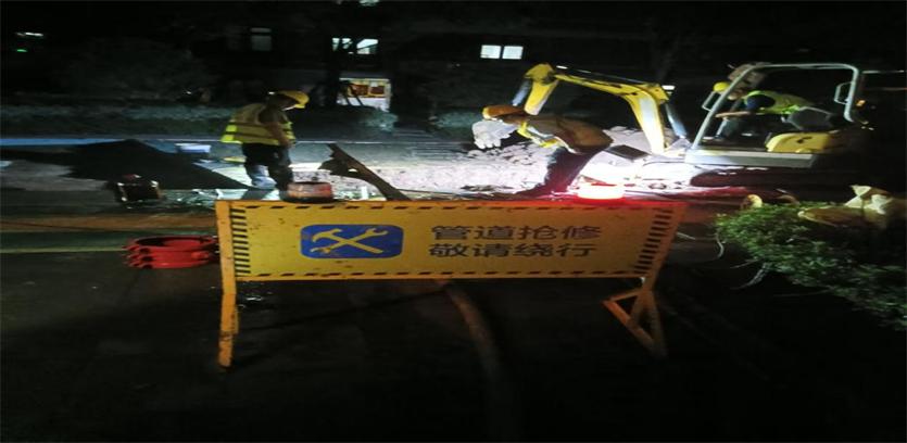 凌晨1时,抢修进入关键阶段。狭窄的作业坑内,抢修作业人员轮番上阵,用工具调校哈夫节角度:“差1毫米都可能漏水,国庆节用水耽误不得。”物业值班人员问:“师傅,天亮前能修好吗?”他们抬头笑着说:“放心,绝不耽误用户做早饭!”