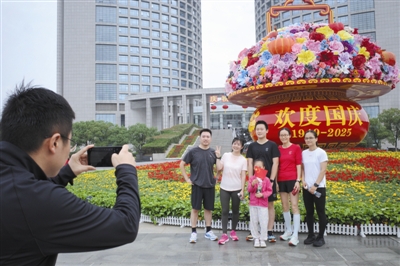 市场星报、安徽财经网(www.ahcaijing.com)讯(记者 张良弓)10月1日,合肥市政务中心南广场上,一些市民来到“欢度国庆”大花篮前拍照留念。