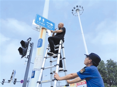 市场星报、安徽财经网(www.ahcaijing.com)、掌中安徽讯(记者 王珊珊 通讯员 全玉梅 文/图)10月9日上午,在合肥市北二环与四里河路交叉口,记者看到,施工人员正将一块掉漆褪色的旧公厕指示牌卸下,换上了崭新的双面居中抱箍式导视牌。“新牌子又亮又清楚,不光找厕所更方便了,看着也比以前结实安全!”家住附近的市民李女士连连称赞。