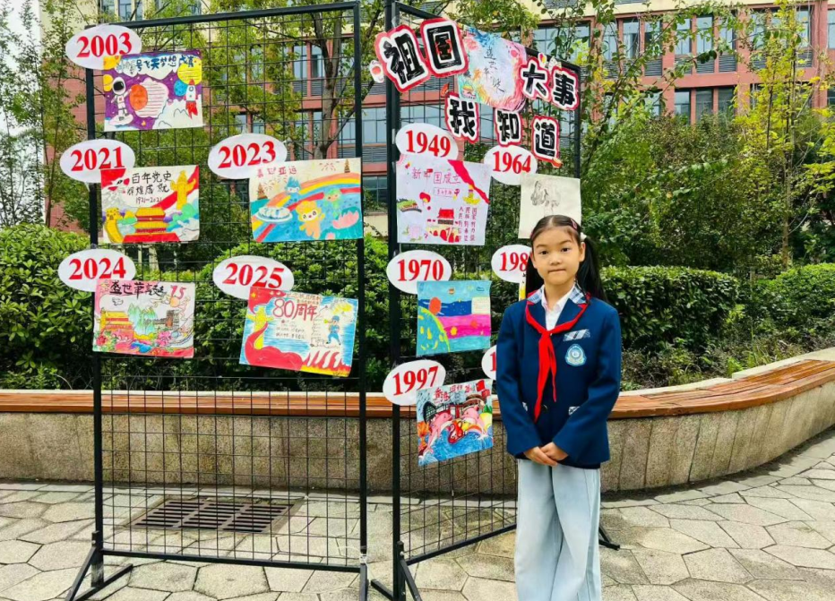 活动在校园小广场拉开帷幕。七个由三年级队员自主策划设计的主题展台依次陈列,内容跨越“抗日英雄”的峥嵘岁月与“科技创新”的时代前沿。队员们化身红色基因的传承者与时代精神的诠释者,自信从容地为来宾讲解每一块展板背后的故事。这些展台不仅是学习成果的视觉呈现,更是将爱党爱国情怀、奋斗精神内化于心的教育载体,展现出红色文化在新时代校园中落地生根、开花结果的教育实效。