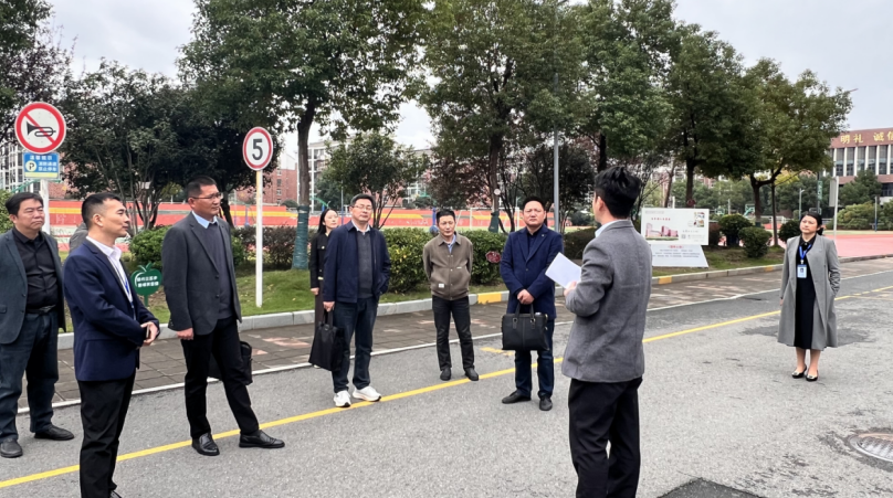 在新站实验中学校长汪飞的陪同下,上派初级中学参访团参观了校园环境,深入了解该校在党建品牌、课程建设、劳动教育及社团活动、校园文化等方面的创新实践。