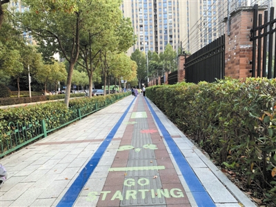 此前,学校周边人车混行,存在安全隐患。滨湖世纪社区经多次勘查,在两所学校周边施画了全长约3531米的“友好通学路”,设置10处特色标识,通过色彩分区和文字引导,保障学生安全通行。