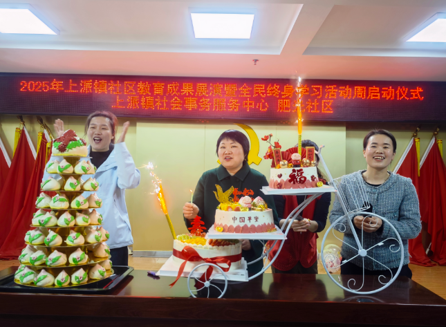 最令人动容的环节来自肥光社区托育中心的小朋友们。他们手捧寿桃馒头,用稚嫩的童声唱响生日祝福歌,围绕在老人身边送上纯真的问候,灿烂的笑容感染了在场的每一个人。活动尾声,社区老年学校乐队奏响《祝你生日快乐》,工作人员共同切开象征团圆的爱心蛋糕,老人们围坐一堂,分享甜蜜,脸上洋溢着幸福与满足。