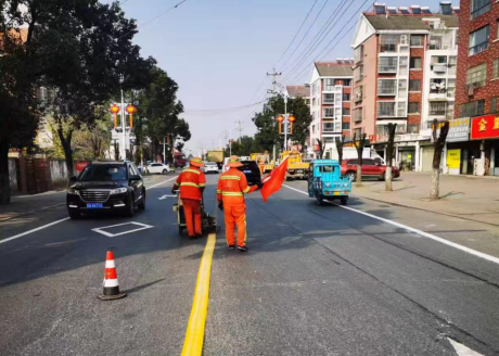 连日来,合肥市公路管理服务中心庐江分中心抢抓晴好天气,对前期排查梳理需更新的标线进行施划。
