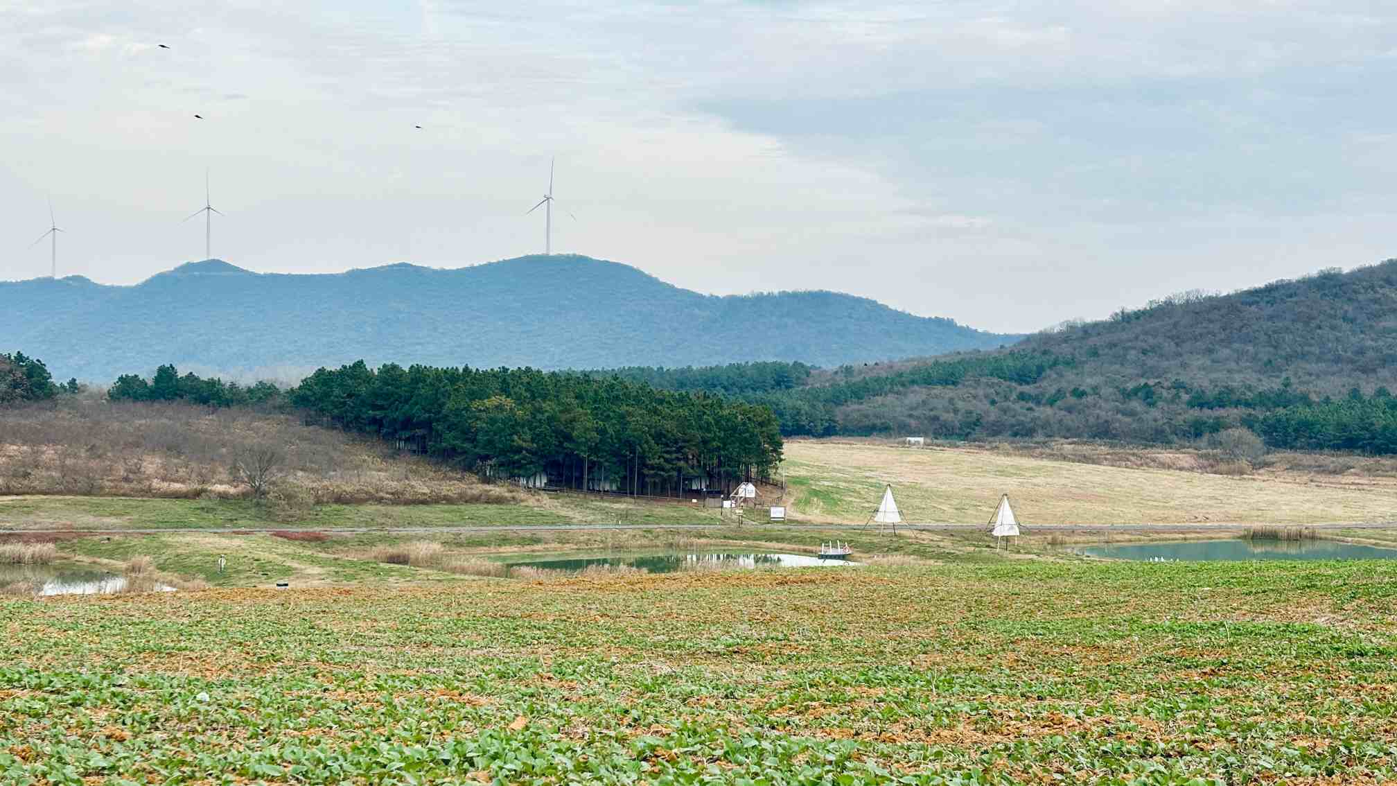 谁说冬日只有萧瑟?在郁金香高地,成片的油菜与小麦正悄然生长,铺开一片辽阔而柔和的绿。走入这幅治愈的田园,风过时,绿浪轻摇,带着泥土与植物的清新,还可在“郁见咖啡驿站”小坐,捧一杯热饮,看远山如黛、田野如毯,心境变得自在。