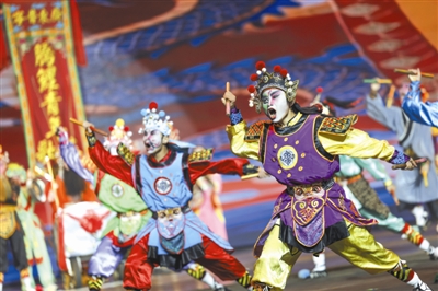 12月18日,黄山徽秀演艺城,演员正在表演英歌舞《鼓鸣盛世》。当日,“徽韵流芳”国家级文化生态保护区交流展示活动非遗专场展演在安徽省黄山市徽秀演艺城举行。生动体现了中华优秀传统文化的多样性与生命力。陆铖