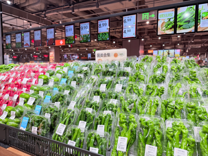 门店始终将 “优质平价” 作为核心民生承诺,在全面提升商品品质的前提下,聚焦家庭日常高频消费需求,精选蔬果、水产等核心品类,以亲民价格让消费者享受到高品质生活。以悦方ID MALL店为例,蔬果区既有粉西红柿6.99元/斤、黄瓜4.99元/斤等基础食材,也有19.9元/斤的干尧榴莲、9.99元/斤的进口黑钻菠萝等高品质鲜果;水产区则推出13.9元/条的鲈鱼、17.9元/只的鲜活公大闸蟹,从日常刚需到品质升级,全方位满足不同家庭的饮食需求。
