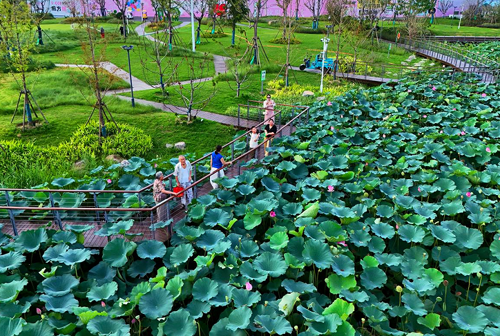 2025年8月3日,安徽淮北杜集区矿山集街道百莲百荷景区焕新升级后,迎来不少游客。近年来,当地坚持党建引领产业转型,打造采煤沉陷综合治理示范区,遵循“深改湖、浅造田、不深不浅种藕莲”原则实施生态修复沉陷区2000余亩,打造了百莲百荷、淮北欢乐世界等一批文旅项目,昔日的采煤沉陷区如今已蝶变为文旅新地标,实现生态效益与经济效益双赢。