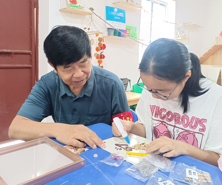 在中草药香氛画的创作环节中,活动将非遗文化传承与文明实践体验巧妙融合。孩子们以天然中草药为“颜料”,巧妙拼贴,将中草药的天然形态与艺术创作融合,一幅幅充满童趣与自然气息的画作逐渐成型。在动手创作的过程中,志愿者们耐心地引导小朋友们认识各种中草药,详细讲解它们的特性与功效,让孩子们在实践中体会到非遗文化与传统中医药文化的深厚底蕴。