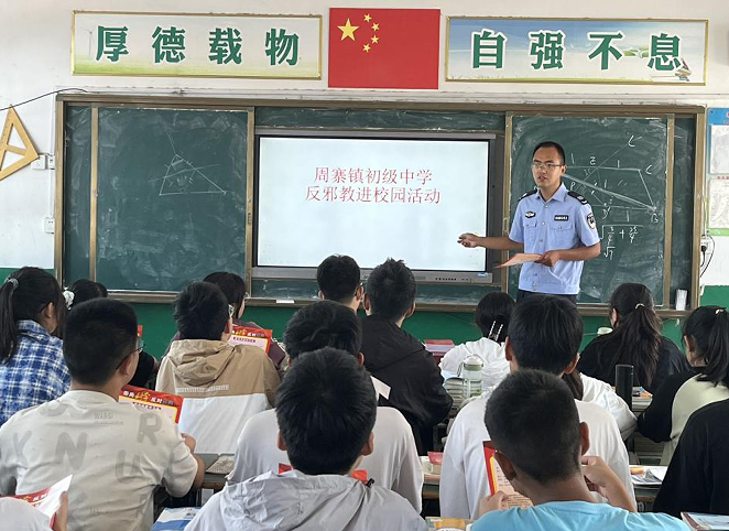 周寨镇综治办联合派出所、司法所等部门,组建“反邪教宣传小分队”,深入各村(社区)、学校、集市等地,普及相关知识。活动现场,工作人员搭建宣传台,发放《反邪教知识手册》等宣传资料,现场解答群众疑问。针对老年群体易受邪教侵害的情况,工作人员用通俗易懂的方言拆解邪教的种类、特征及危害案例,让大家明白邪教如何通过“治病消灾”“末日论”等幌子迷惑群众、破坏家庭。