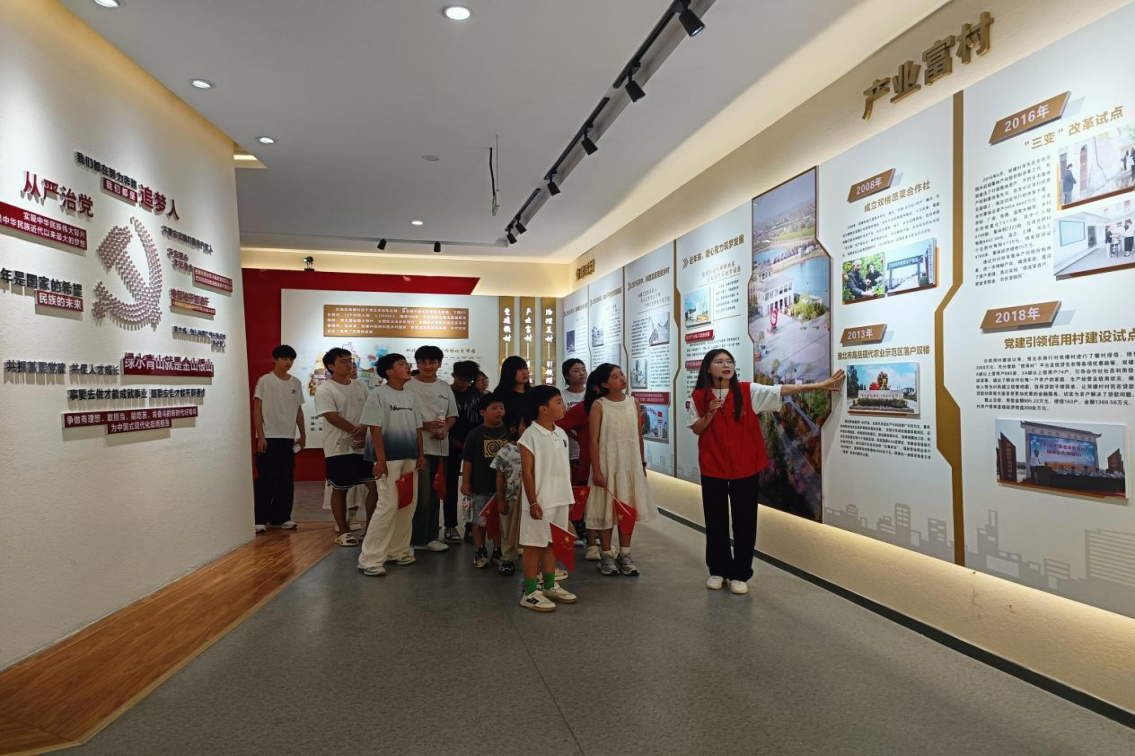 探寻乡情悟奋斗。在双楼村乡村干部实训基地(村史馆),孩子们开启了一场“探寻家乡记忆”之旅。通过丰富的照片、详实的文字和生动的讲解,从采煤塌陷区的综合治理到全国开放式村部发源地的故事,从旧村落改造的变迁到现代农业示范区的落户,孩子们沉浸式触摸乡村发展脉络,深刻理解了长辈们筚路蓝缕的创业艰辛。五年级学生郝若曦动情地说:“今天我对咱们村有了全新认识,感受到了创业的艰苦。今后我会更加珍惜生活,努力学习,为家乡发展贡献力量。”